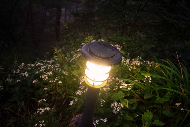 这温暖的路灯照亮与一片小花相伴也是温馨。