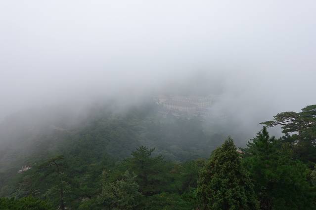 往清凉台去的时候回望北海宾馆,已经被大雾覆盖几乎不见踪迹了