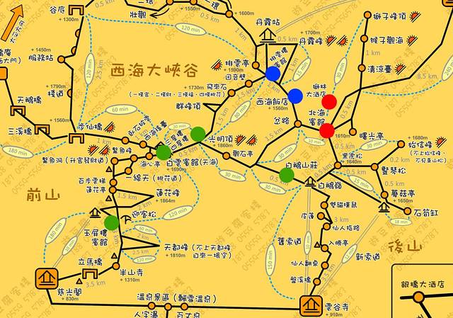 山上的住宿就没什么太多可挑的就那么几家,主要是看行程的安排,想在光明顶看日出日落的就住白云宾馆或光明顶,想在丹霞峰看的住西海宾馆或排云楼,想在清凉台看的住狮子林或北海宾馆,白鹅和玉屏楼的位置实在是尴尬,怎么安排都不太对不推荐住。价格上也是差不多的,平日里床位150左右 标间700左右,节假日直接翻倍,谁让他们垄断呢,没有办法。