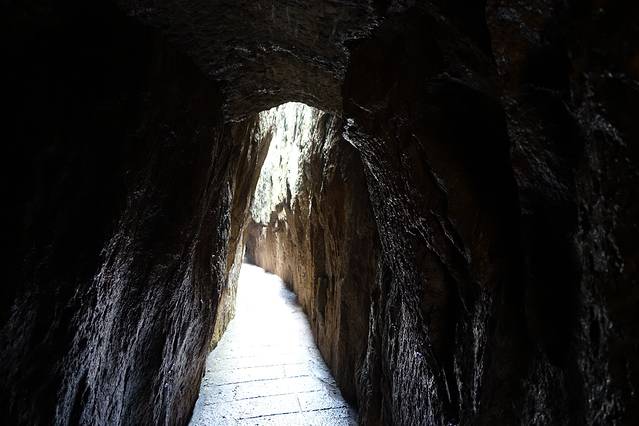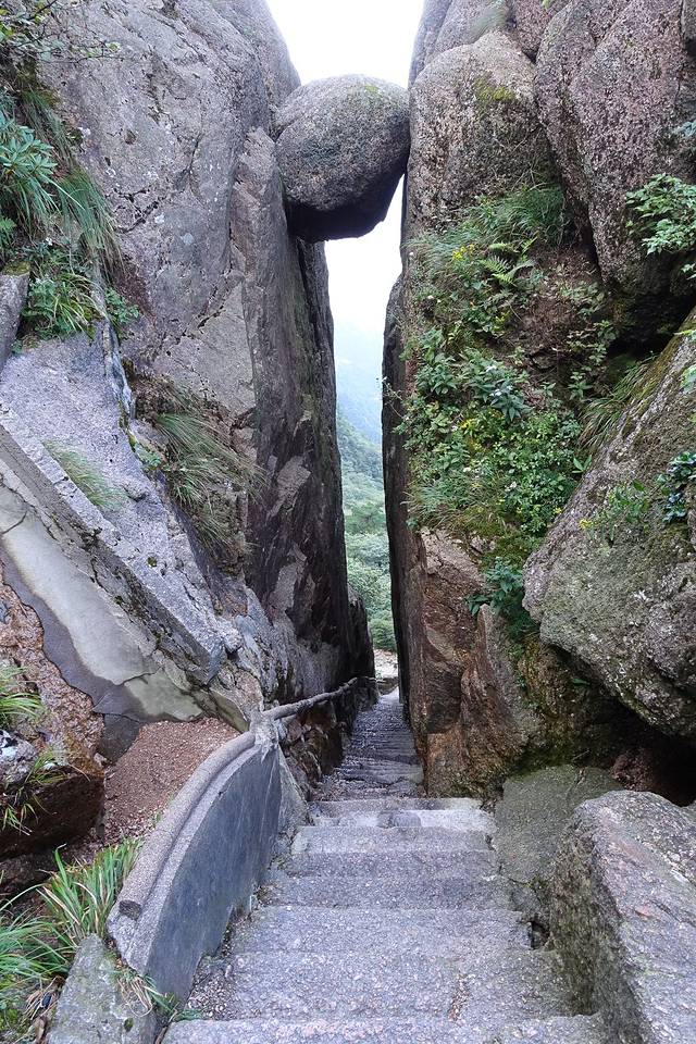 一线天和鳌鱼洞是两条路,只能二选一,我还是选择了陡峭的一线天,顶上的石头还有水滴下来,中间一段因为路滑走的特别慢。