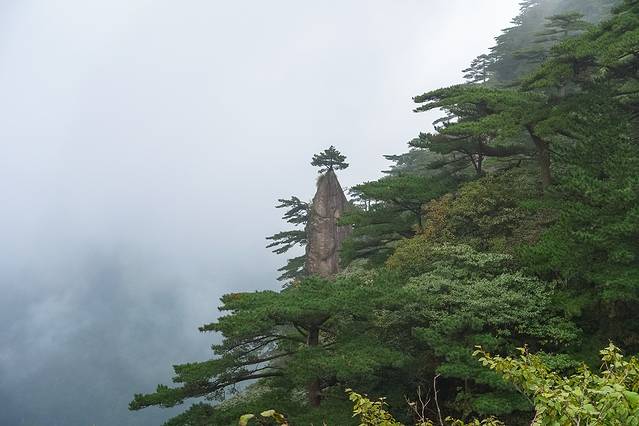 梦笔生花,传说乃是诗仙李太白随手抛下的一直毛笔所化,笔杆化成一座笔峰,笔尖化成了一棵松树,真的是自然之神奇。