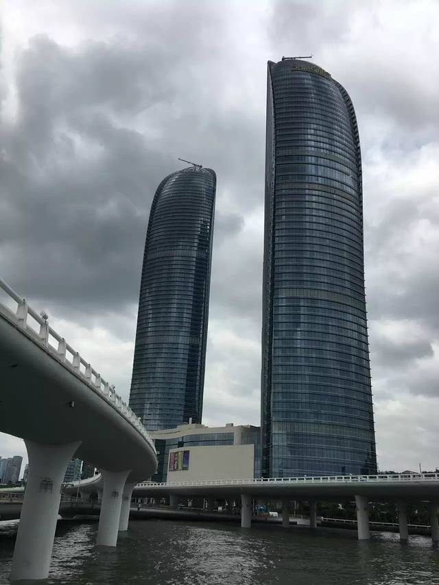 本来经过一个地下通道就到了白城沙滩,可是,因为之前的厦门台风,那个通道被水灌满了。不过,灌满的好处在于,宝宝们在演武大桥上很近的看到了双子塔(土逼脸)。