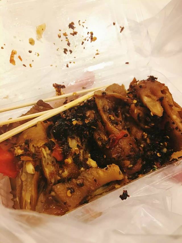 鸡脚冻是闺蜜带回住处吃的,当时我已经滴水进不去了,回去洗完澡就睡死过去了,感谢她累成死狗的情况下,深更半夜的,吃前还记得给我留一个美照,哈哈,这才是拥有社会主义核心价值观的合格吃货,我为我没有给所有弹药照美照感到悔恨。