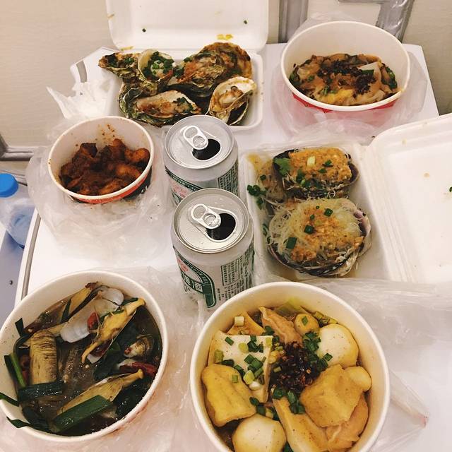 烧烤:还是要说,我们在不同家买了烧烤。烧烤这货,一定要新鲜新鲜,反正到处都一个价,多尝几家,蛤蜊(15块钱/份)+生蚝(10块钱10个)+扇贝(10块钱4个)。