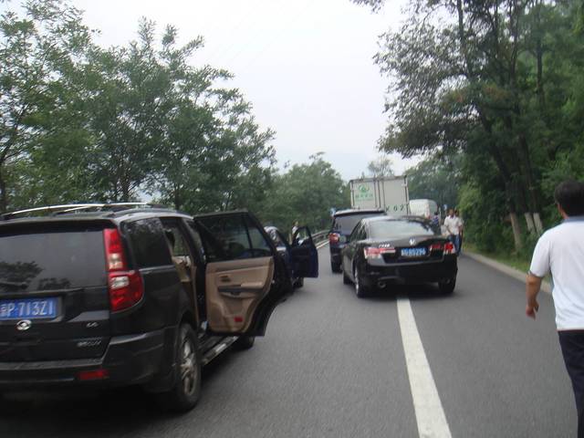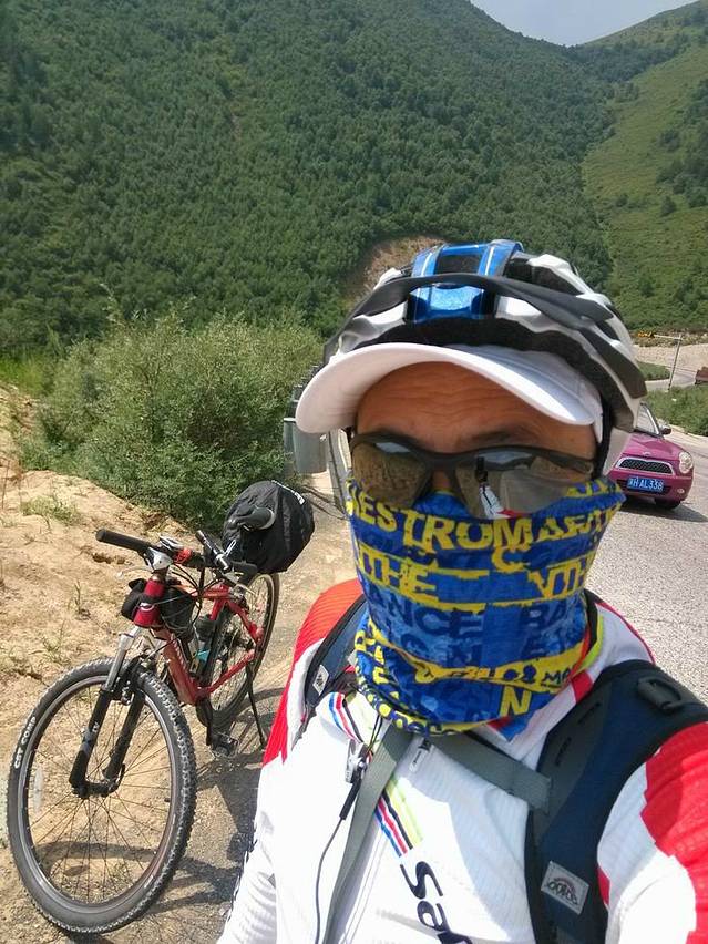 中午到的赤城,吃完午饭本打算住下,但回家的愿望很迫切,于是赤城到大海陀,这一段又是缓上,又暴晒,很是煎熬,终于到转入大海陀的路口了,前胎没气了,正好路边是小饭店,有水,开始补胎。