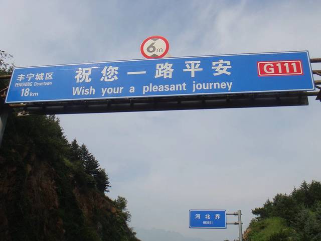 一路大车很多,路上很多水,一些大车进京要涮干净的,于是成就了洗车产业,110国道沿途很多简易洗车的,骑车一不小心就被洗了,一路小心翼翼的,忍着PP的疼痛,好在下坡多。看到这个路牌比较激动,终于回来了。