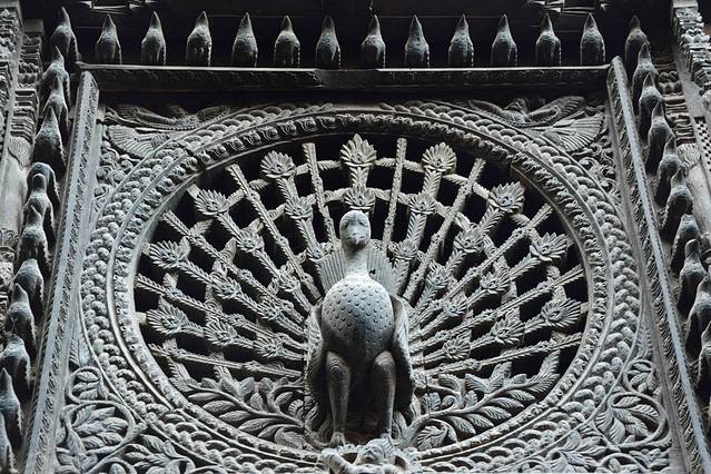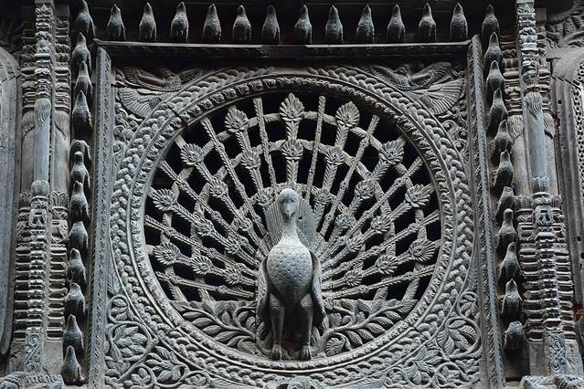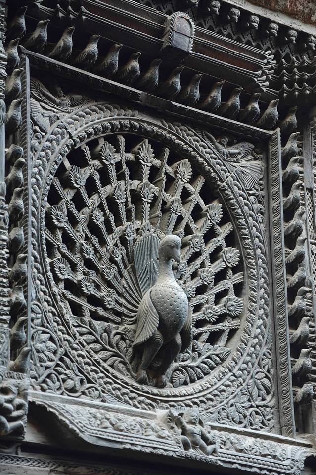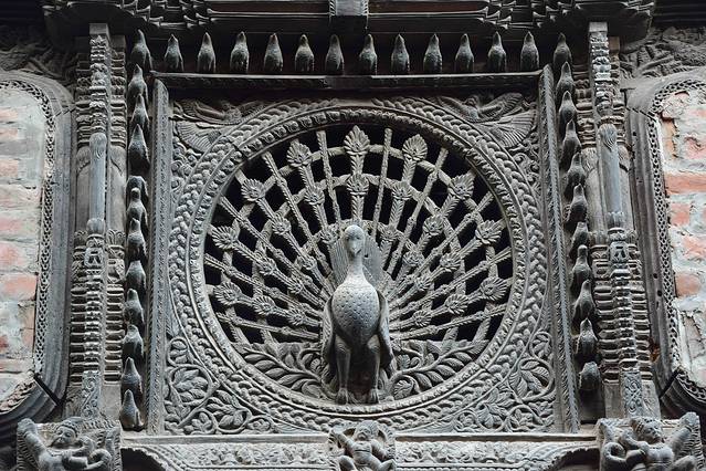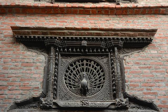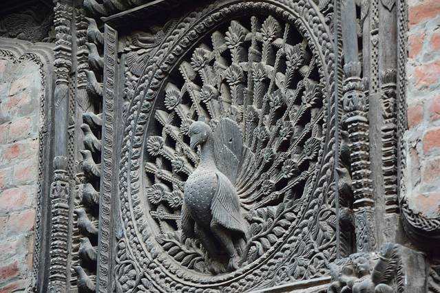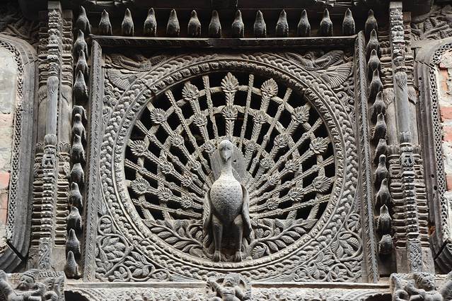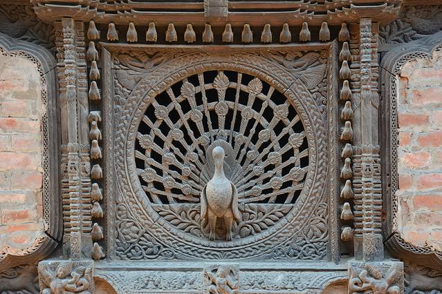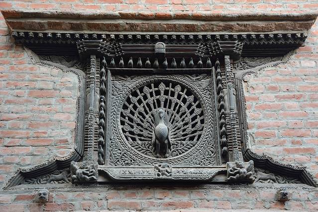 巴克塔普尔的孔雀窗隐藏在王宫旁迷宫般的达塔特拉亚巷里布加利寺的墙上。孔雀窗是尼泊尔尼瓦尔人的木雕杰作,也是加德满都山谷现存最好、雕刻最精美的孔雀窗,它代表了这个国家木雕的极致。经过200多年,孔雀那根根翎毛及旁边复杂的雕饰仍然清晰可见,工艺十分精湛。