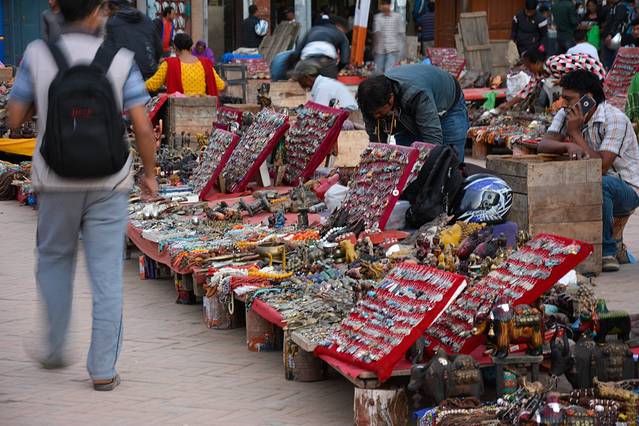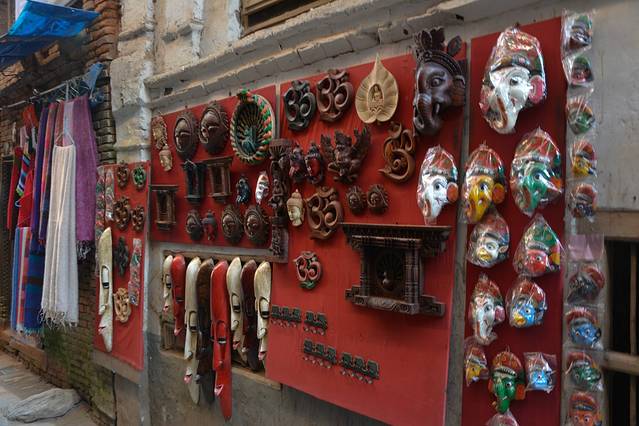一路上兜售工艺品的商铺非常多,这里的好多木雕艺术也是在加德满都看不到的