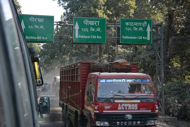 到博卡拉和加德满都的距离一目了然,然而糟糕的路况限制车的速度只能是二三十迈,所以才要耗去大量时间