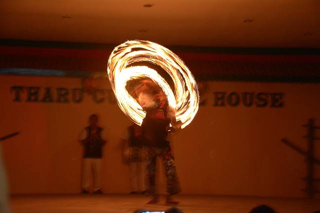 每晚在索拉哈的塔鲁文化中心都会上演塔鲁文化表演,开场奏响国歌之后,男人女人们轮流上场表演,女人载歌男人载舞,伴随着乐手击打手鼓的声音,表演者们围成圈挥舞手中的器物,其中最为精彩的就是男人们的棍子舞,或两排或三排,敲一下你的棍子再敲一下他的棍子,如此复杂的动作在他们来说却如此娴熟流畅。还比较精彩的是火流星,周围灯光都暗下来,只有台上飞舞的两颗火球照亮大厅。除了这些还很喜欢乐手那喉清韵雅的歌声,仿佛来自大自然的声音。