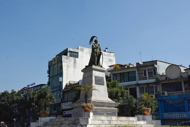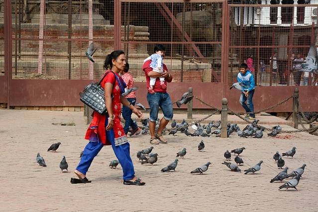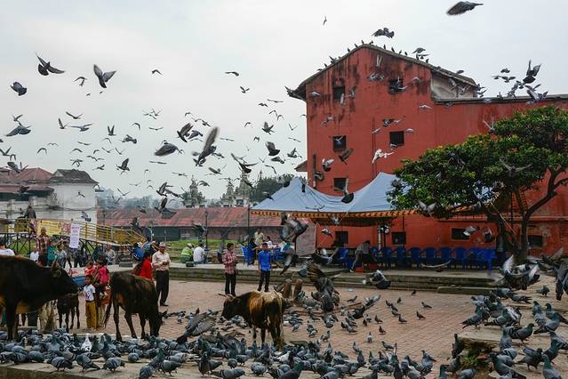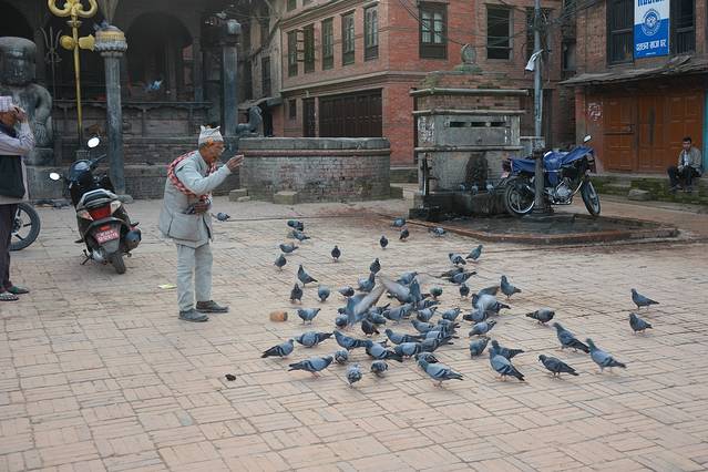 广场上有老者在喂鸽子,远处的Dattatreya寺里虔诚的信众在礼拜