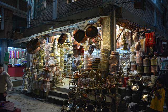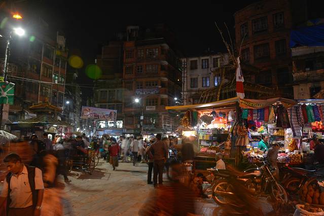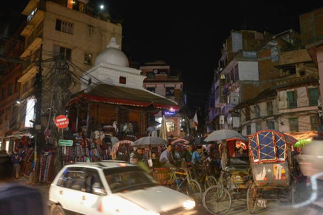 从杜巴广场的马康街出来已经是入夜时分,在杜巴广场和泰米尔之间的阿山街(Asan Tole)可以说是入夜后加德满都最值得去的地方之一,这里是加德满都最忙碌的地方, 是一个充满惊奇异象的街道,有着各色各样的传统商铺地摊,充斥着大小庙宇及街边神像神台,贩夫走卒,游客香客,人群汹涌,车水马龙。