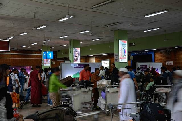 加德满都的国际机场不大,然而却是尼泊尔唯一的国际机场,这里只有五个登机口分在两处1、2、3号登机口在一个大厅里,4、5在一处大厅。大部航班都是到了之后又装上一批乘客再飞走。