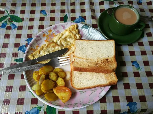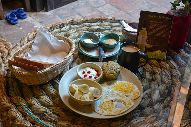 老板娘为我准备的早餐,真的是我在尼泊尔吃过最丰盛的早餐了,尤其那个放了石榴的酸奶,入口丝滑,香甜可口。