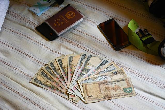 尼泊尔流通货币为尼泊尔卢比(Rs),因为是小币种,所以在国内没法换,只能到当地去换,我当时的汇率是1:16左右,当然好多地方是非常愿意收美元的,比如打车的时候,还有酒店,餐厅都可以付美元,不过这样你可能要多付一些钱出去,所以不管什么时候最好是in Rupee。