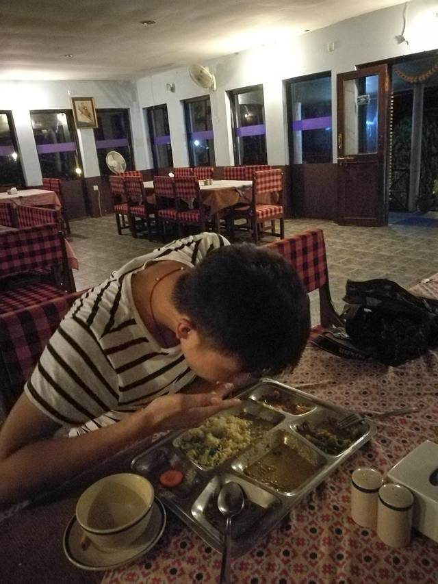 一直都想像当地人那么吃饭,也没什么丢人的,就把菜和汤都倒在饭里,开始下手的时候还真有点下不去,一是不知该怎么下手,从何处下手,二是还是觉得有点别扭,但一狠心也就下去手了,然后用右手把饭菜汤拌到一起然后抓起一团塞进嘴里,我的动作还有点生硬,不过感觉蛮好玩,但切记一定是要用右手。吃完餐厅旁有个专门洗手的水池,水池这可是没有香皂洗手液这些的,就用清水洗。
