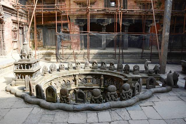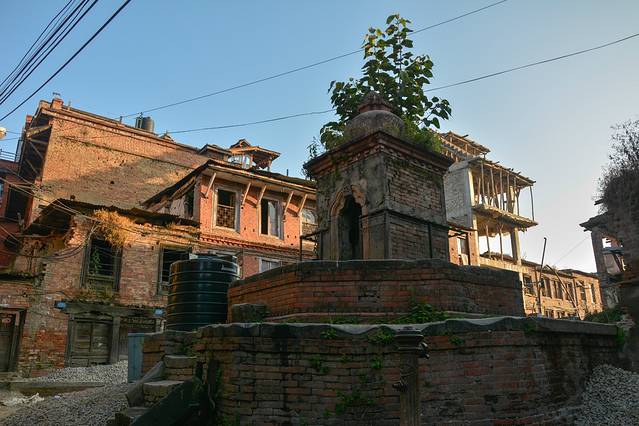 Maju Deval寺已经完全倒塌,只剩下残破的塔基,与之同样命运的还有非常古老的独木庙,加德满都的名字就源于独木庙。