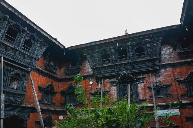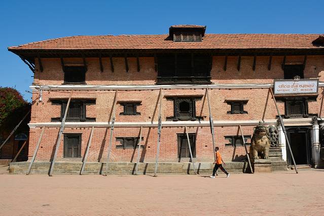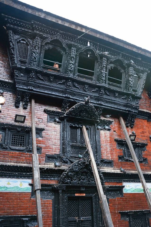 这个被支撑着的建筑就是国家艺术馆,紧挨着巴克塔普尔的王宫,我去的时候仍在营业,门票100Rs,进去后右手边有位戴眼镜的老爷爷在柜台后收费。