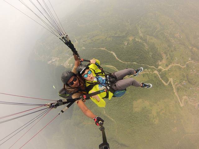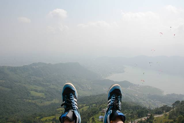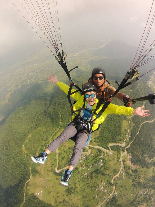 早上天没亮就搭车前往Sarangkot去看日出,然后回酒店稍作休息就去玩滑翔伞。下午泛舟费瓦湖,看湖上日落。晚上在Moondance用晚餐。