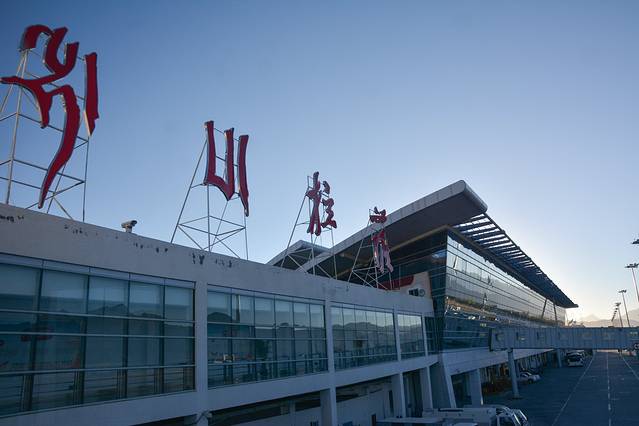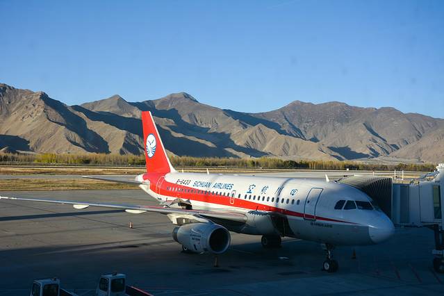 1小时10分钟后飞机降落在了拉萨贡嘎机场,因为降落在拉萨所以就看不到布达拉宫了,不过在拉萨机场短短2小时的停留却是我非常期盼的。拉萨海拔3650多米,是坐落在世界屋脊上的省会城市,如果这次降落后我还能安然无恙,不出现高反,那以后再来西藏就可以直接飞过来了。