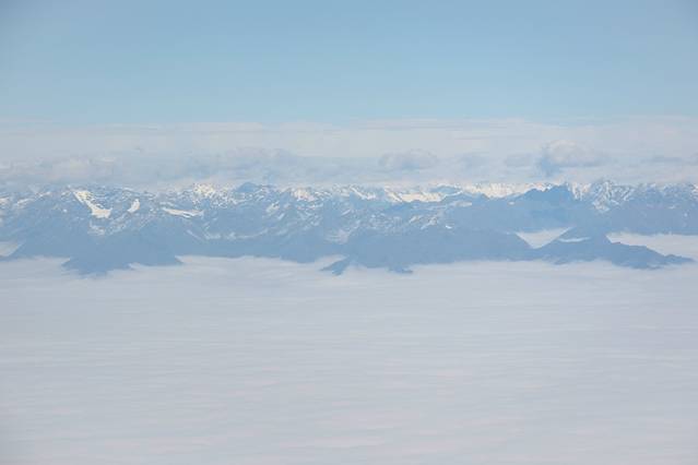 飞机起飞后又有机会可以见到那几座举行山峰,可以再一次在不同时间包揽雪山的壮美,高原的壮阔。