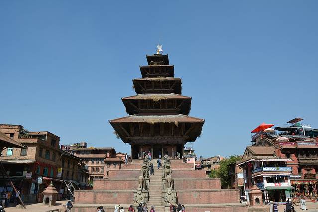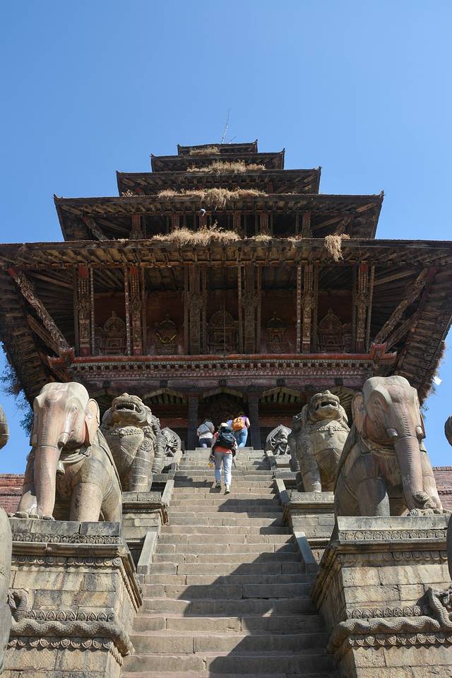 尼亚塔波拉神庙建于1702年布彭德拉 马拉国王统治时期,这座5层寺庙高30米,是尼泊尔最高的寺庙,真庆幸它在15年的大地震中幸免于难,让我有幸见到了这座艺术瑰宝。