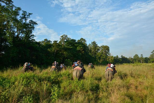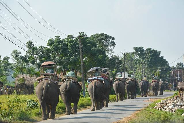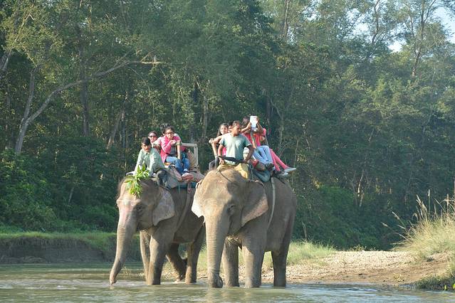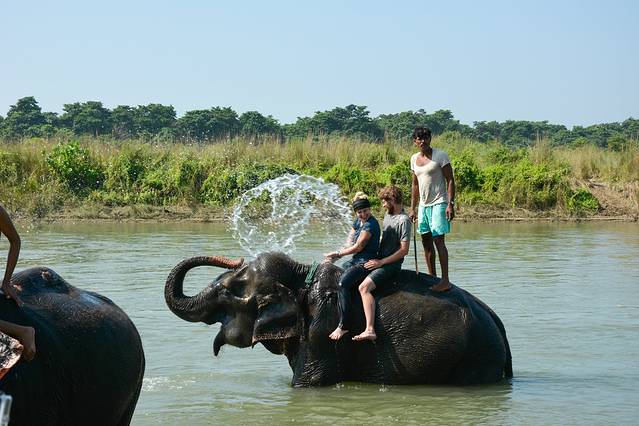 早上乘坐独木舟漂流在Rapti河上,与鳄鱼近距离的接触,之后在丛林里短暂的徒步后来到小象繁育中心。中午于大象一起洗过澡,下午骑上大象来一场Jungle Safari。晚上观看塔鲁族的文化表演