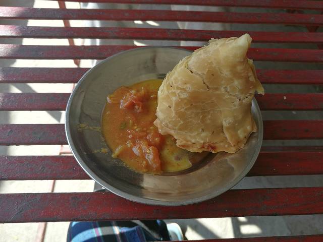 中间停靠休息站的时候又尝了一种当地食物,不知道名字,外边用面包裹,外皮被炸的酥脆,然后里面是一颗咖喱味的土豆,站着辣酱吃,不知道是不是饥饿的原因,吃起来感觉非常好吃