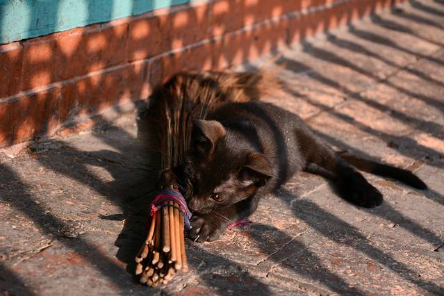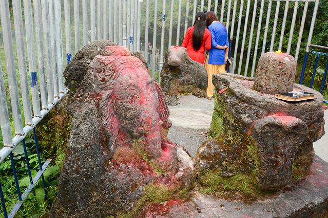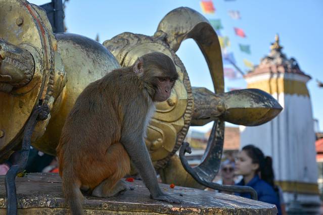 金刚杵旁的猴子也在接受众信徒的朝拜