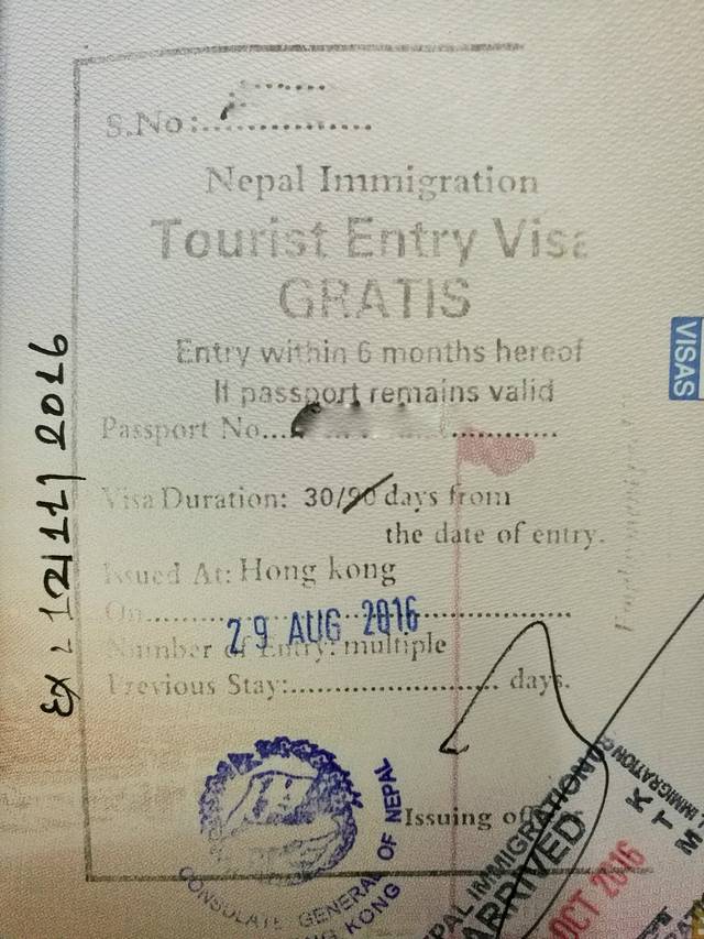 为了表示对中国在地震中的帮助的感谢,尼泊尔在2015年12月宣布了给予中国赴尼泊尔公民免签待遇。然而,但是,听说中国海关对没有签证的护照是不放行的,所以为了安全起见,在出发前,我在国内提前办了尼泊尔的签证,找的是公安系统的公民出境咨询服务大厅。
