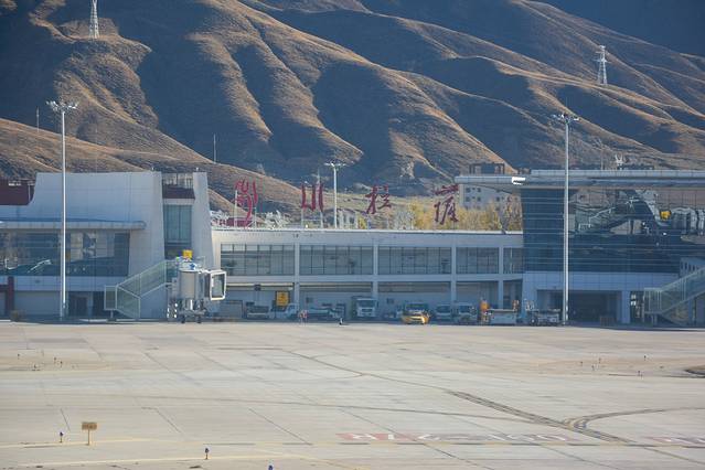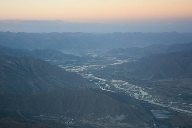 贡嘎机场在雅鲁藏布江南岸,四周全是光秃秃的山。