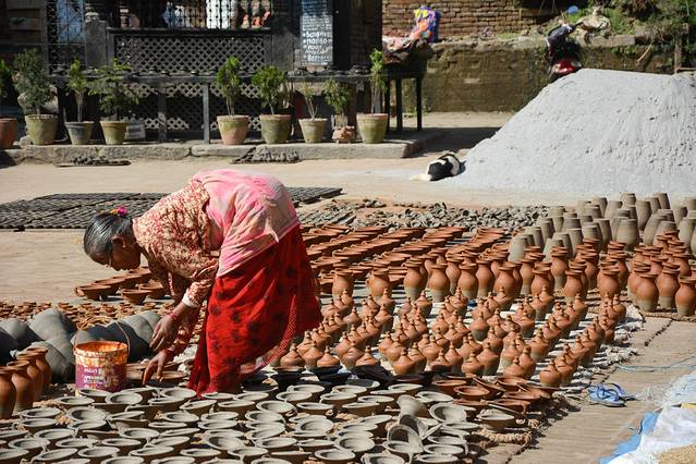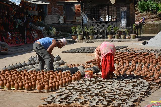 沿小路向西南方向走便可到达陶工广场(Potters’ Sq),因为震后修复的关系,广场有一部分被水泥沙石占用了,还有一部分堆放着待晾晒的谷物,剩下的地方则堆满了格式陶器,一排排黏土陶罐摆在阳光下晾晒。广场周围有出售成品陶器的商店,不妨瞒下脚步去看看,也许就会发现心属的作品。
