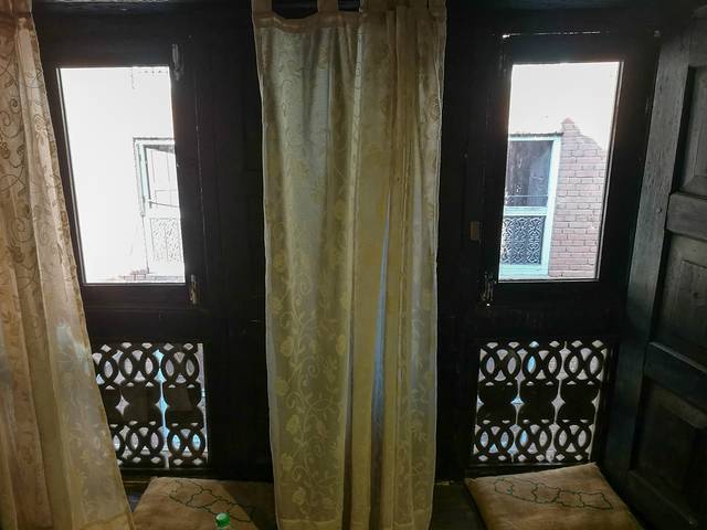 据说孔雀窗复杂精致的雕刻是为了装饰和采光,外面的人很难观察到屋里的情况,而窗内的人则可肆无忌惮的打量外面的世界。