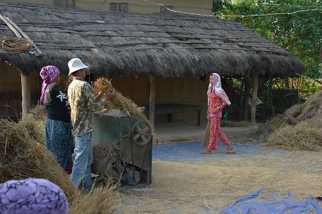 奔波的一天,从博卡拉到奇特旺坐大巴车要将近7个小时,到酒店后在向导的带领下参观塔鲁族传统的村庄。