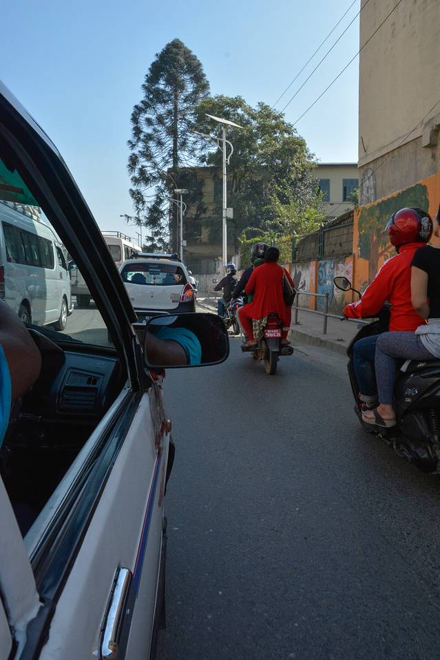 与老板娘告别,我们说想叫一辆出租车会加德满都,老板娘说如果把车交到古城里的话就是1200Rs,如果我们自己走出古城再打车的话就是700Rs,东西也不多,所以我们就到古城外去打车。在门口的时候看到了在杜巴广场是要做我们导游的小哥,虽然我们并没有请他,不过他还是很热情的帮我们找到一辆出租车,开始他说只要600Rs,后来那司机实在不愿意就涨到700Rs到泰米尔去,所以说这里的人给我的感觉非常单纯与热情,他们也想挣钱生活,但挣不到这份钱也不会失了为人该有的善心,非常感谢这位小哥。