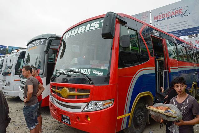 今天这一整天时间几乎都在大巴车上度过的,早上八点出发,走的还是来时那黄土漫天,没有围栏,没有隧道的国道,下午五点左右才到加德满都的泰米尔,这一路竟开了9个小时,之后就奔着尼泊尔之行的最后一站——巴克塔普尔出发了