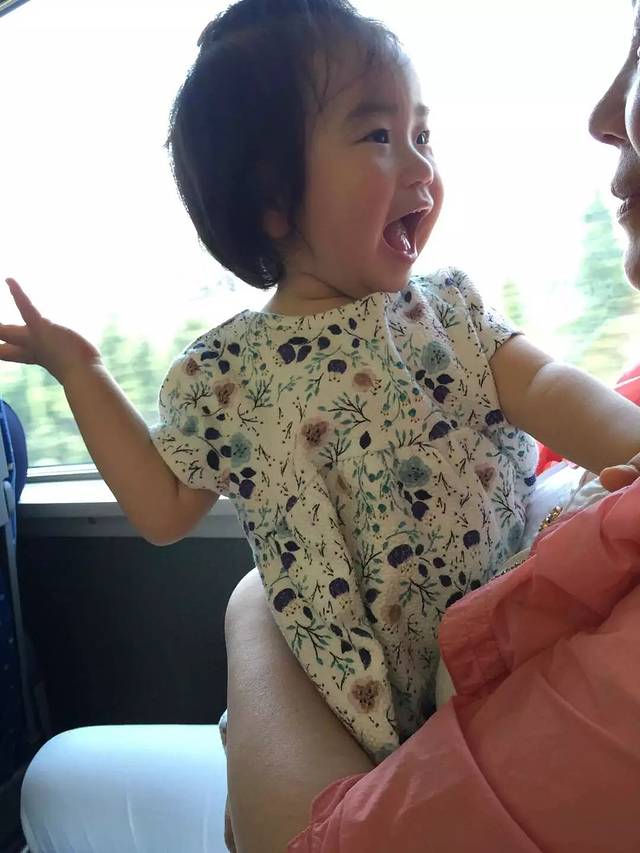 第一次坐高铁的小孩儿很开心比坐飞机开心,带孩子出行高铁真的比飞机适合!