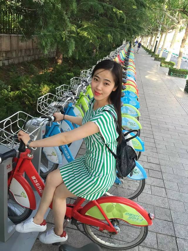 潍坊随处可见的低碳生活,自行车公交,只要办一张银行卡一刷卡就可以骑走了,妈妈特别喜欢这个