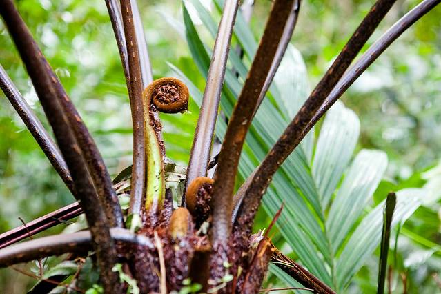 桫椤又名树蕨,是古老的蕨类植物,茎直立,中空,似笔筒,叶螺旋状排列于茎顶端。是已经发现唯一的木本蕨类植物,极其珍贵,堪称国宝,被众多国家列为一级保护的濒危植物,有“活化石”之称。