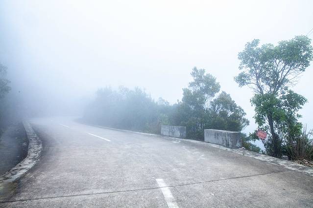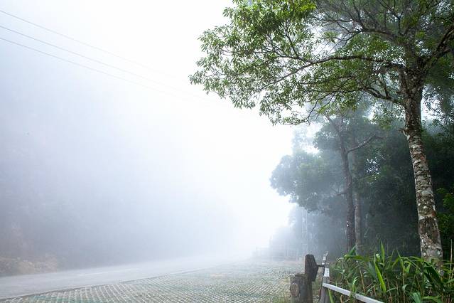车一路在云雾里穿梭,山顶能见度不足十米,走着走着就消失在这云雾里,断断续续的下着雨,一会小雨,一会大雨。