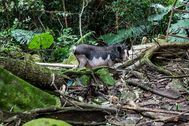 鸣凤谷入口偶遇一只悠闲的五脚猪,它们不是真的有五只脚,而是因为它们像野猪一样脚短小,嘴巴尖长,喜欢在野外到处拱土觅食,走起路来嘴巴贴着地,从后面看就像五只脚,所以当地人就叫它们“五脚猪”。
