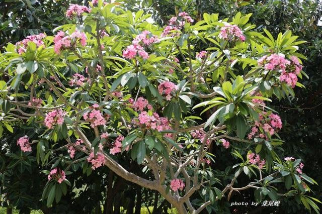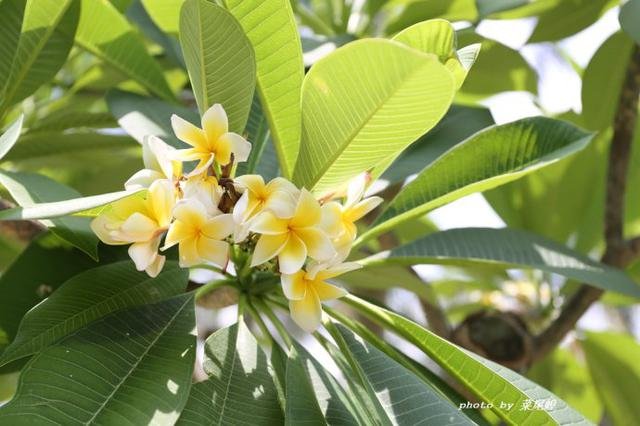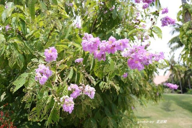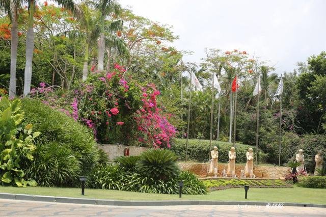 五月的三亚花开遍地,惊艳的凤凰花,开在门口的三角梅,路边的紫薇花很明媚,不同颜色的鸡蛋花灿烂着枝头,园林小路上的莲雾果熟了,旁边的黄皮还泛着绿色,西餐厅边上的铁西瓜结着硕大的果,很像柚子,发财树的果我第一次见,听说会发财。满园的花香。