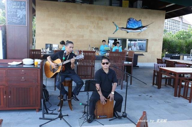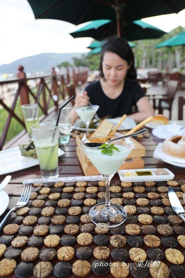鱼吧海鲜餐厅就在沙滩上2015年开始营业的,将亚龙湾的半月形的海湾景致尽收眼底。我们决定在鱼吧吃完再返程,主理新派创意海鲜。坐拥一线海景的碳烤海鲜餐厅鱼吧,空飞行的直升机在湛蓝的空中呼啸而过,海上运动此起彼伏,海浪热烈地抚摸着沙滩,海边游玩的孩童倒成了风景的点缀。晚风送来树叶的浅吟低唱,裹着时隐时现的花香及大厨在烤着龙虾的香味窜入鼻子,驻店歌手在恰当的时候用沧桑的吼着ififinehimifijustfollow...清爽的饮品和迷人海景让视觉、味觉、听觉、嗅觉、触觉全方位同步享受,低就这么静静多发呆也是充电。