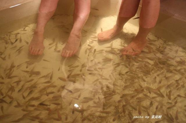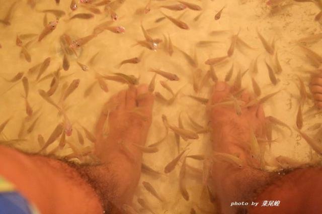 来,我们一起穿着毛裤做鱼疗。痒痒的,很爽。