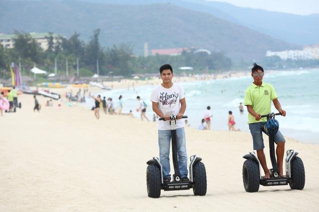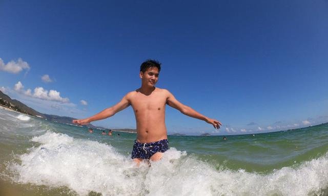 到了三亚,怎么可以不玩水,亚龙湾的海就在酒店边,带了泳衣,就到海边游泳玩水,蔚蓝的海,洁白的云朵,阳光很好,没有涂防晒霜,就跳进海里,浪很大,拍打过来的感觉真好,在沙滩边玩灵动车,坐着游艇游三亚湾,这里人不多,海水很干净。