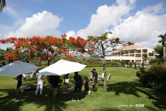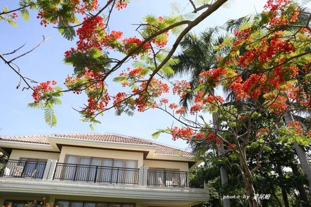 在三亚,蓝天白云沙滩是不缺的,而凤凰花恰到好处地点缀其间,热情似火,像极了三亚的天气。