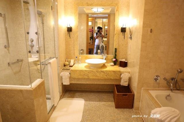 宽阔的卫浴,淋浴,浴缸,洗手盆都很齐全,很奇怪看到的香皂是六神品牌,有点奇怪,后来才了解到,是六神投资了这家万豪,很熟悉的味道。