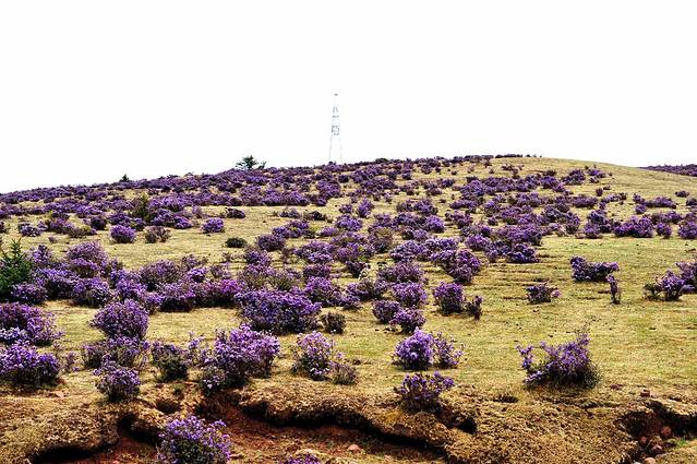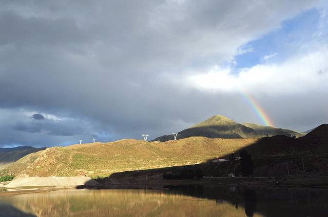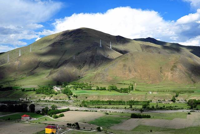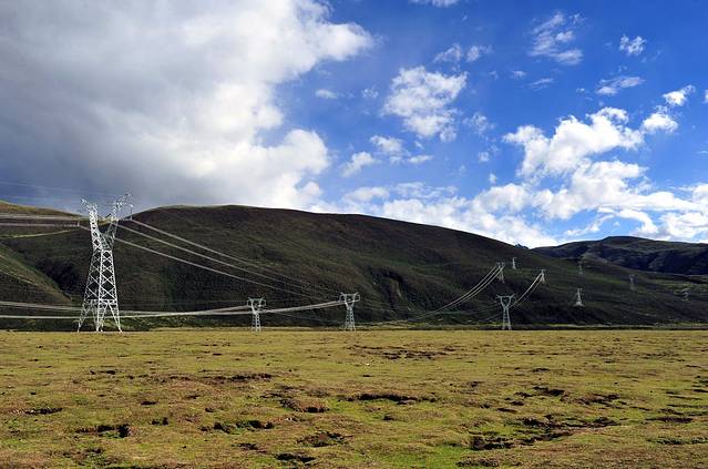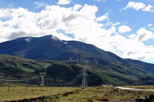 下到山底,又是阳光明媚。路边山间的输电线塔也让我觉得是一道风景。
