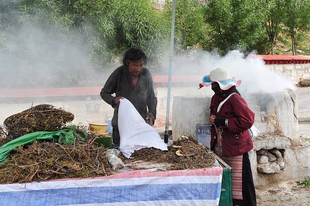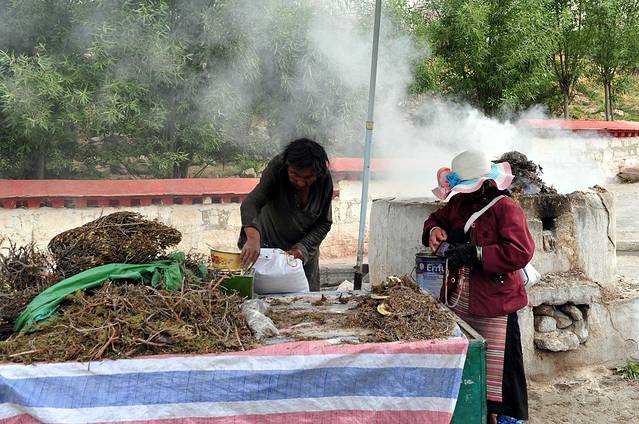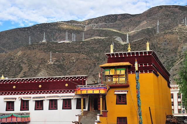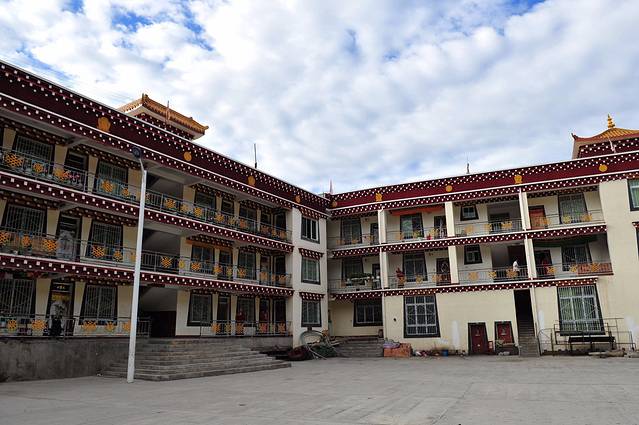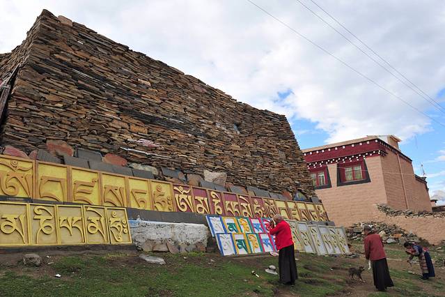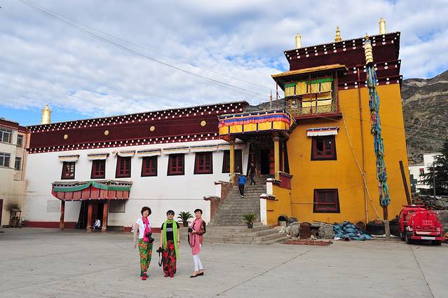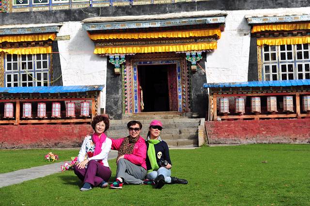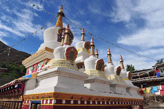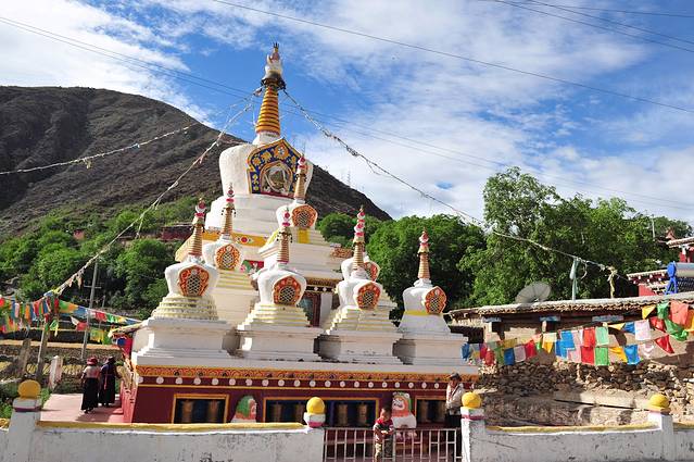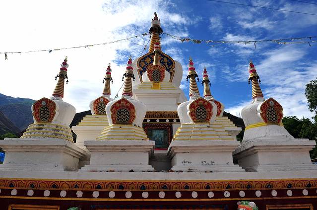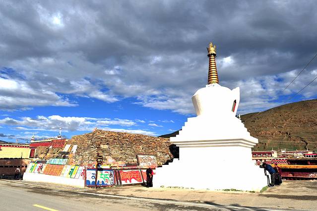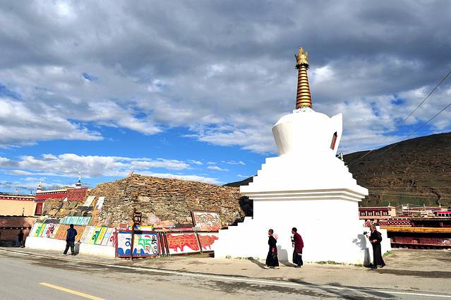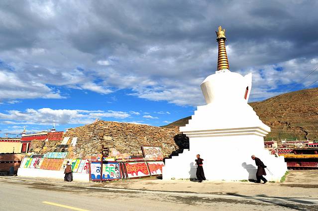 早饭后,到达理塘的喇嘛寺长青春科尔寺。寺庙前面有很多藏民在转白塔。