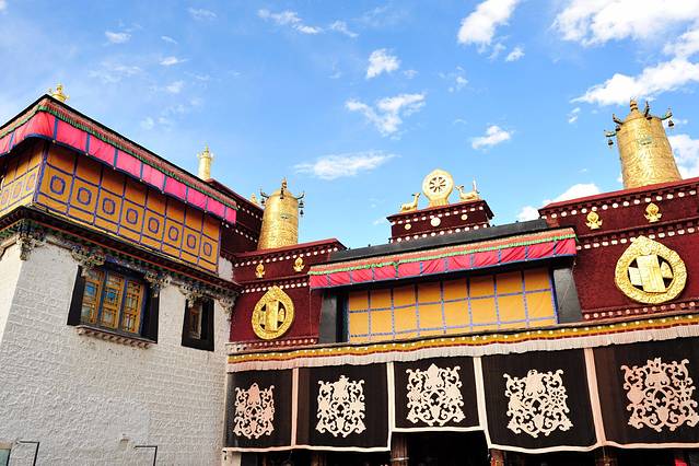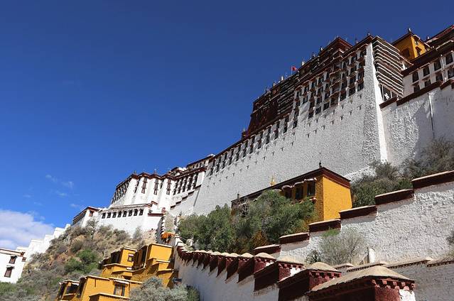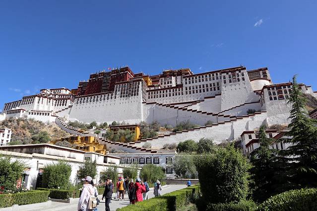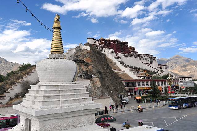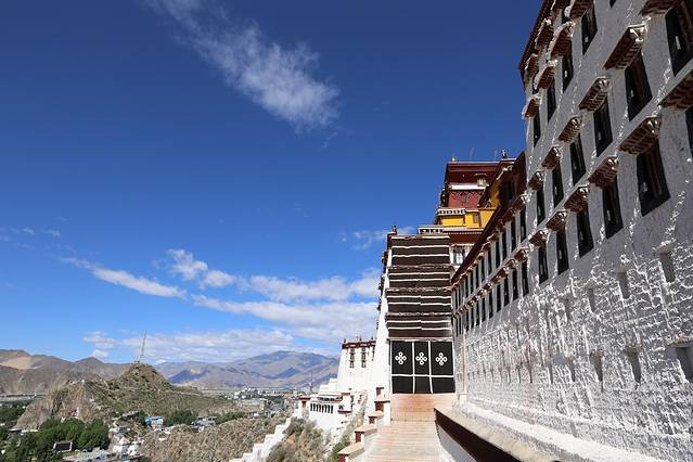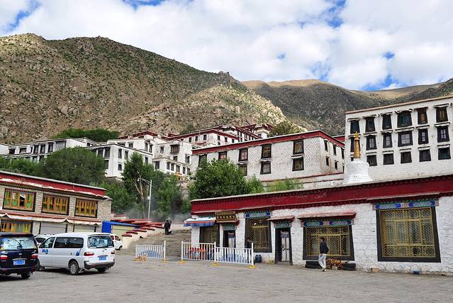 离开布达拉宫,前往哲蚌寺。哲蚌寺坐落在拉萨市 西郊约十公里的根培乌孜山 南坡的坳里,原名是吉祥永恒十方尊胜州,藏语 意为“堆米寺”或“积米寺”,藏文 全称意为“吉祥积米十方尊胜州”。它由黄教创始人宗喀巴 之弟子降央曲吉-扎西班丹于公元1416年创建。是中国藏传佛教格鲁派 寺院,是格鲁派中地位最高的寺院,与甘丹寺 、色拉寺 合称拉萨三大寺,也系黄教 六大寺庙之一。解放前该寺僧众超过一万人,是藏传佛教最大的寺庙。拥有141个庄园与540多个牧场,是藏传佛教最大的寺庙,鳞次栉比的白色建筑群依山铺满山坡,远望好似巨大的米堆,故名哲蚌。